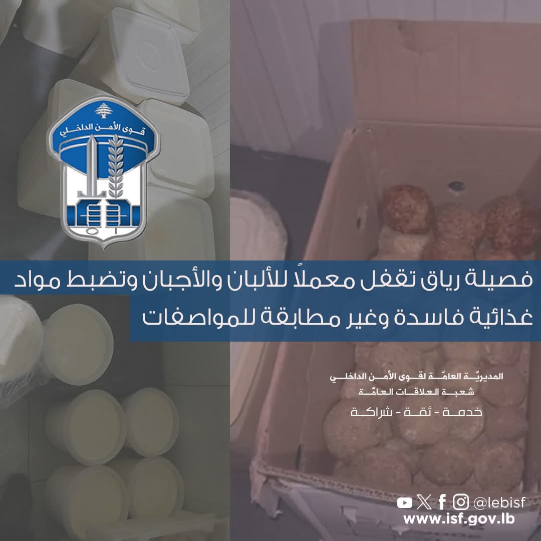 أعلنت المديريّـة العـامّـة لقــوى الأمــن الـدّاخلي ـ شعبة العـلاقـات العـامّـة انه “في إطار المتابعة المستمرّة التي تقوم بها القطعات المختصّة في قوى الأمن الداخلي لملاحقة الجرائم بمختلف أنواعها على جميع الأراضي اللّبنانية وتوقيف مرتكبيها، ولا سيّما المتعلّقة بالأمن الغذائي”. وقالت في بيان إنها “داهمت قوّة من فصيلة رياق في وحدة الدّرك …