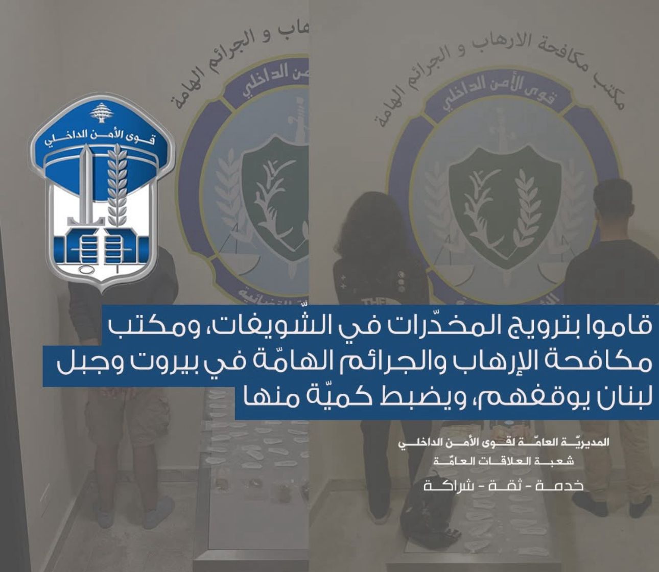 صدر عن المديريّة العامّة لقوى الأمن الدّاخلي – شعبة العلاقات العامّةالبلاغ التّاليفي إطار المتابعة اليومية التي تقوم بها القطعات المختصة في قوى الأمن الداخلي لمكافحة جميع أنواع الجرائم، لا سيّما ترويج المخدّرات في مختلف المناطق اللبنانية، توافرت معلومات لدى مكتب مكافحة الإرهاب والجرائم الهامة في بيروت وجبل لبنان – وحدة …