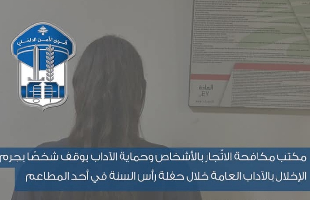 صدر عن المديريّة العامّة لقوى الأمن الدّاخلي ـ شعبة العلاقات العامّة التالي:بتاريخ 1-1-2026، توافرت معلومات لدى مكتب مكافحة الاتّجار بالأشخاص وحماية الآداب في وحدة الشرطة القضائيّة حول قيام شخص بالرقص عاريًا داخل أحد مطاعم مدينة بيروت، وذلك خلال حفلة رأس السنة، حيث جرى توثيق الحادثة بمقطع فيديو جرى تداوله عبر …