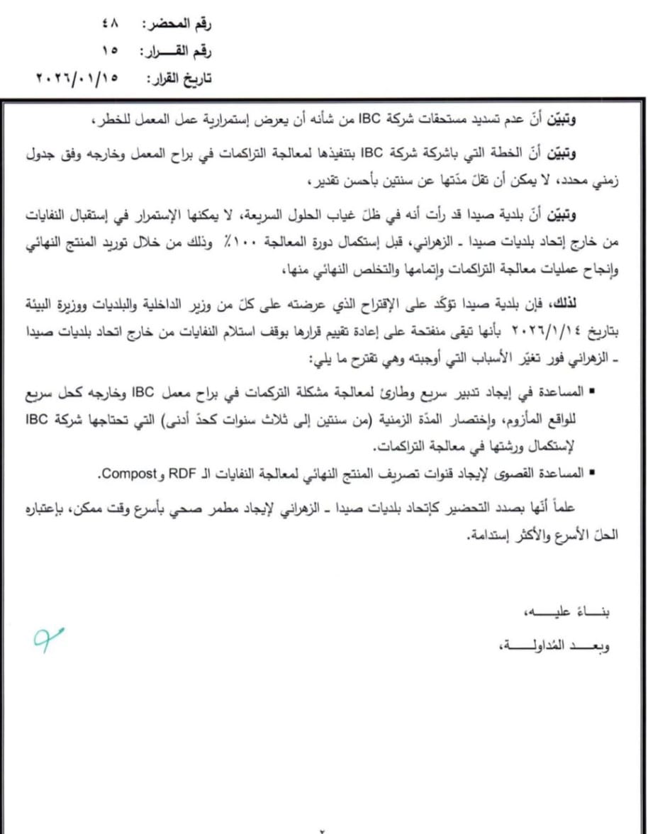 وبحسب مصادر مطّلعة، فإنّ بلدية الشويفات تتّجه نحو تصعيد مباشر في مواجهة الحكومة وكافة الجهات المعنيّة، معتبرةً أنّ المدينة ترفض أن تكون مكبًّا لنفايات المناطق الأخرى، ومؤكّدة أنّ سياسة ترحيل الأزمة بدل معالجتها تشكّل استخفافًا بحقوق الأهالي، وأنّ الحلول الترقيعية لم تعد مقبولة، في وقت باتت فيه المعالجة الجذرية والمستدامة ضرورة لا تحتمل التأجيل.