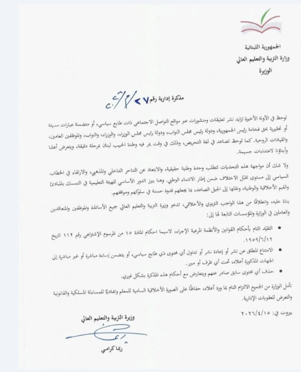 لم يمرّ تعميم وزيرة التربية على الأساتذة والمعلمين مرور الكرام، إذ أثار موجة استنكار واسعة، لا سيّما أنّه يحدّ من حرية التعبير السياسي التي يكفلها الدستور اللبناني لكل مواطن. فكيف بالأساتذة الذين يساهمون في تكوين شخصية الطالب، ويُدرّسون موادّ تعليمية تحرص على دفعه إلى التعبير بحرية عمّا يفكّر به في مختلف المجالات، ومنها السياسية؟